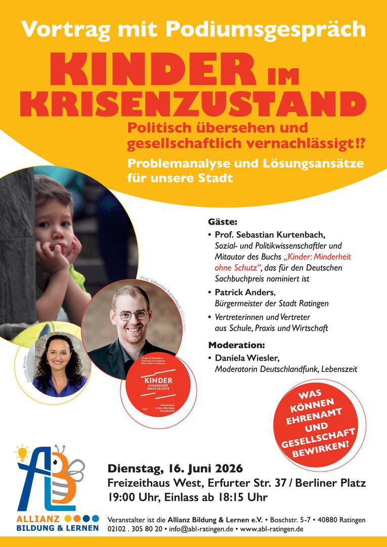 Beides führt zu Herausforderungen im Bildungssystem, die kaum zu bewältigen sind. An diese Veränderungen ist das Bildungssystem kaum angepasst. Seit Jahren belegen Studien die negative, zum Teil desolate Entwicklung von Kompetenzen, besonders der Sprach- und Lesekompetenz bei Kindern in der Grundschule. Seit Jahren klagen Arbeitgeber über ein sinkendes Bildungsniveau der Auszubildenden. Kindern, die heute in der Schule sind, helfen zukünftige Bildungsreformen des Bildungssystems nicht. Über 180 Ehrenamtliche der ABL übernehmen Verantwortung für Kinder und Jugendliche im Sinne einer generationsübergreifenden Solidarität.